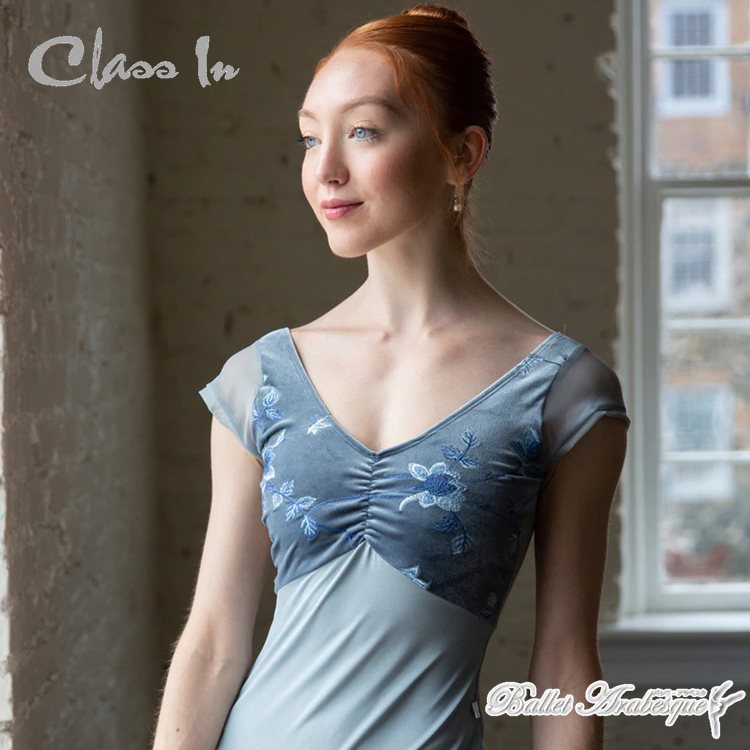 【Class In】フラワー刺繍入り グレイ 大人 バレエレオタード EM508