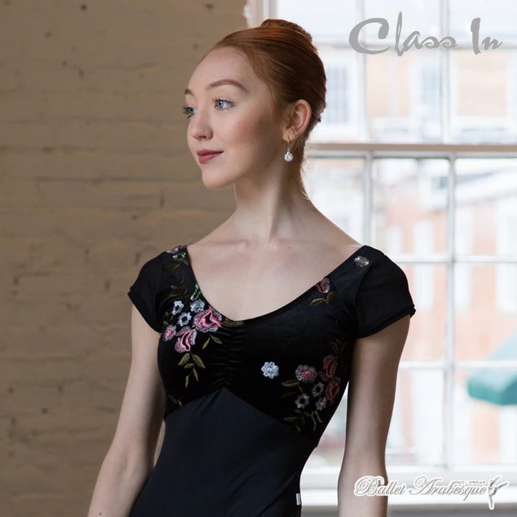 【Class In】フラワー刺繍入り 黒 大人 バレエレオタード EM525