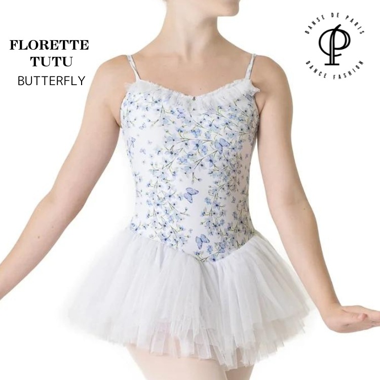 【DANSE DE PARIS ダンスドパリ】 チュチュドレスレオタード バタフライ フローラル子供 バレエ レオタード スカート付き (FLORETTE TUTU R0028G BUTTERFLY)