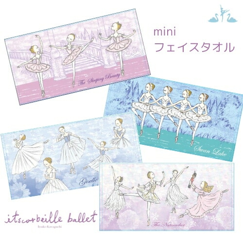 バレエ ミニ フェイス タオル / イツコルベイユ プレゼント 発表会 お返し ギフト 小さめ 眠りの森の美女 白鳥の湖 くるみ割り人形