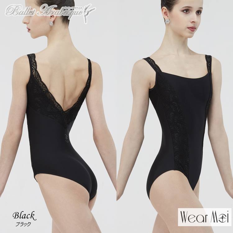 タンクスタイルキャミソールレオタード。繊細なレースが両サイドから後ろのV字バックまでほどこされエレガント。こちらは大人用です。子供サイズもあります。
