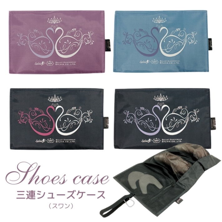 三連 シューズケース バレエ バッグ 【Sylvia シルビア】 シューズケース(スワン) バレエ ポワント バレリーナ バレエ発表会 プレゼント 雑貨 レッスン シューズ入れ メッシュ
