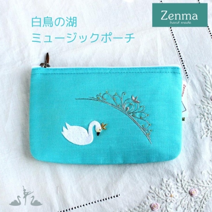 白鳥の湖 バレエ ミュージックポーチ 【ZENMA ゼンマ】 ベトナム 刺繍 ハンドメイド 発表会 プレゼント 小物入れ ギフト 【バレエ ショップ アラベスク】