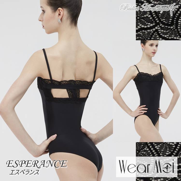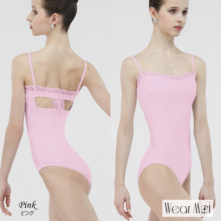キャミソールレオタード。レースがあしらわれたエレガントなデザイン。後ろのスクエアデザインが特徴的。こちらは大人用です。子供サイズもあります。