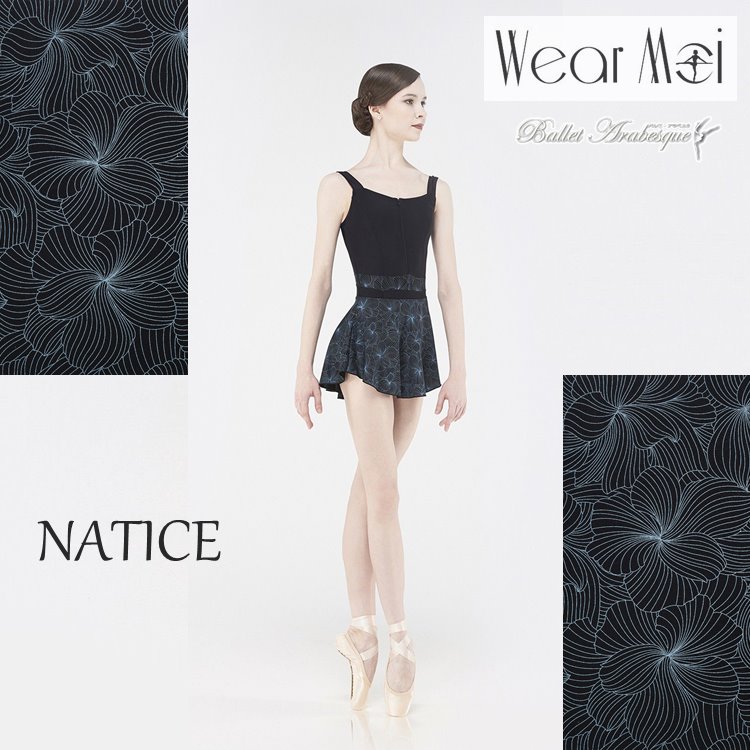 【メーカー】 ウェアモア Wear Moi (フランス) 【素材】 プリントマイクロファイバー NATICE ナティス プルオンスカート ナイトブルー色で描かれたエレガントな花柄。 ウェストがゴムのプルオンスカート。 スカート丈 XS/S(フロント約25cm/バック約28cm) M/L(フロント約26.5cm/バック約30cm) タンクレオタードのATLANTE アトラントや、ショートスリーブのHELIX エリックスと合わせても Fancy microfiber skirt with an elasticated finish at waist. Printed microfiber |
