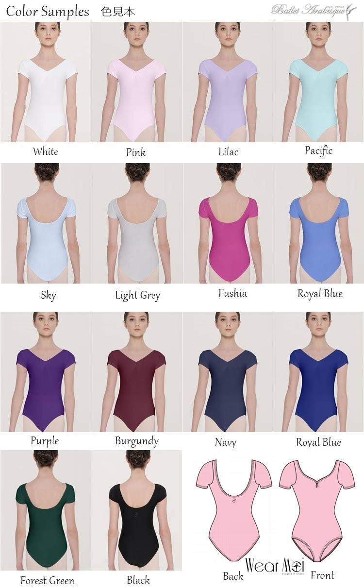 【メーカー】ウェアモア Wear Moi (フランス) 【素材】マイクロファイバー フロントライナー付 CANDIDE キャンディド 子供バレエレオタード ギャザースクープネックラインとスクープバックを兼ね備えたクラシックな半袖レオタード 豊富なカラーバリエーション 大人サイズもあります Classic short sleeve leotard with gathered scoop neckline and scoop back. Full front lining. Microfiber |