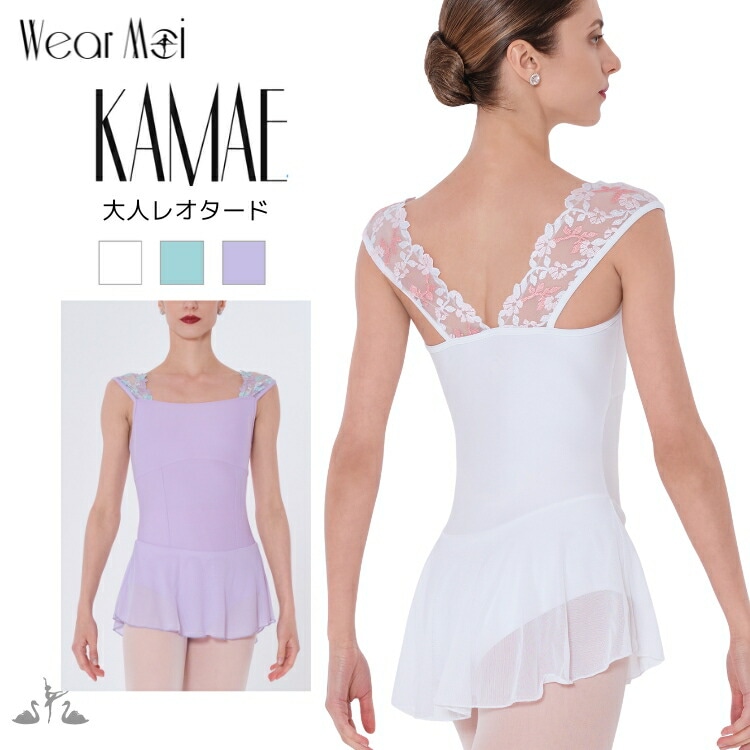 KAMAE カマエのバレエレオタードは、大人からジュニアまで幅広くおしゃれを楽しみたい方にぴったりの一着です。Wear Moi (ウェアモア)ブランドの直輸入品で、クオリティの高さと洗練されたデザインが魅力的。上品なレースと華やかな刺繍が施され、ダンスシーンでの存在感を演出します。白、ライラック、パシフィックの3色展開で、スカート付きで着こなしの幅も広がります。