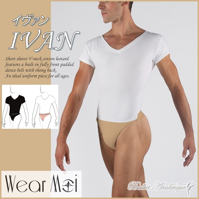【WearMoi ウェアモア】大人 Mens IVAN イヴァン【メンズバレエ男性Tシャツ】Vネック ボディスーツ ダンスベルト付き Tバック